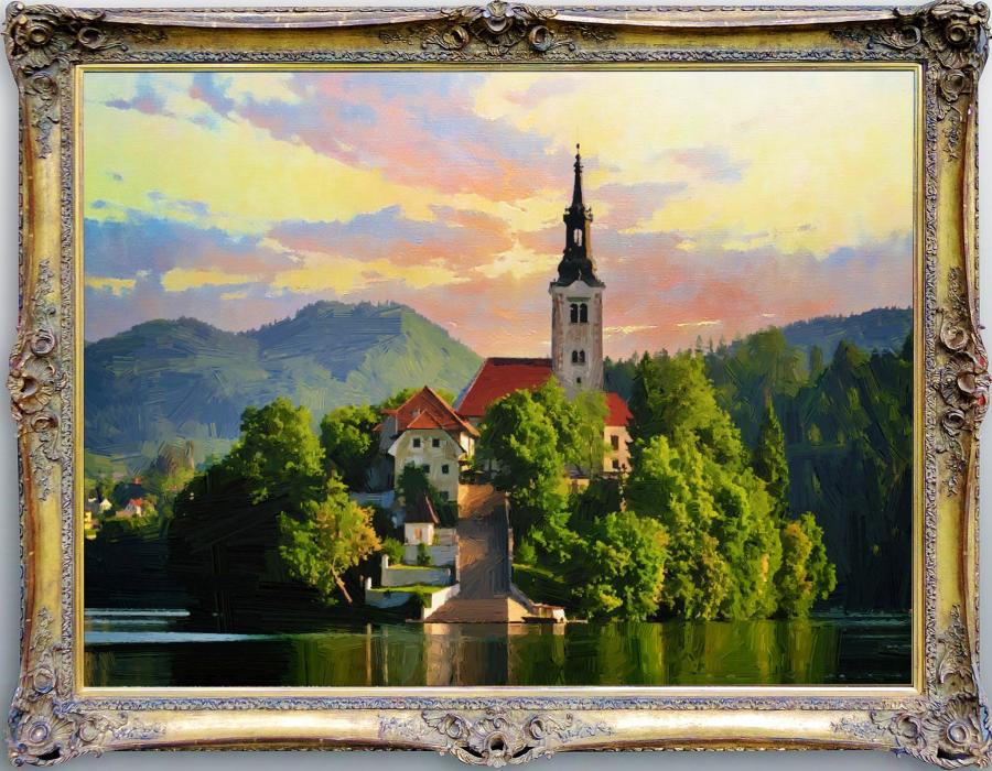 8. Bled island view from the south, 60 x 88 cm, oil on canvas, 2022 |