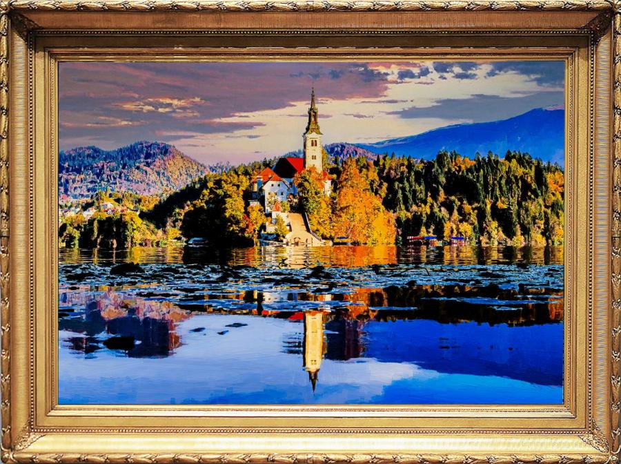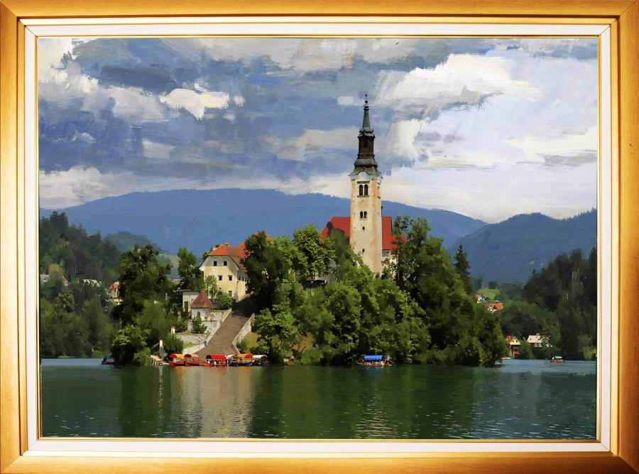 9. Bled island view from the south close view, 65 x 90 cm, oil on canvas, 2021 |